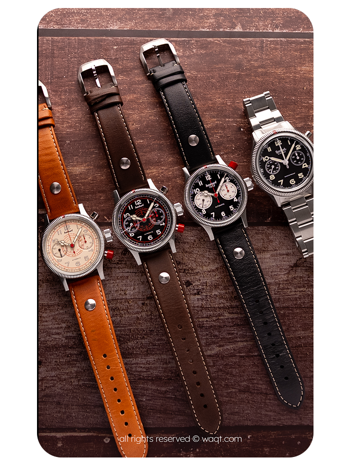 تُقدم العلامة التجارية مجموعات متنوعة من الساعات وتشمل هذه المجموعات على ساعات الكرونوغراف والساعات الأخرى المصممة لتلبية متطلبات مختلف المهنيين، بما في ذلك الطيارين والسائقين والرياضيين. ساعات العلامة التجارية ليست وظيفية وموثوقة للغاية فحسب، بل تتميز أيضًا بتصميمات مميزة وخالدة تجعلها مطلوبة من قبل هواة الساعات وهواة جمعها في جميع أنحاء العالم.