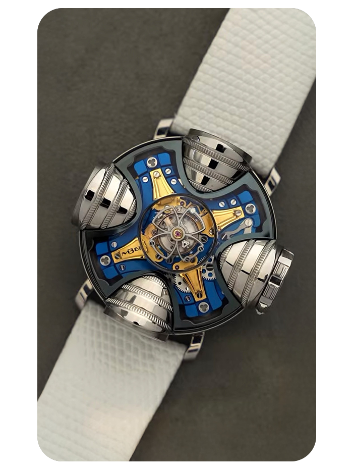 MB&F watches are characterized by their bold and unconventional designs, featuring unusual shapes and striking combinations of materials. Each watch is a work of art, created by a team of top watchmakers and artisans who collaborate with Büsser to bring his vision to life.