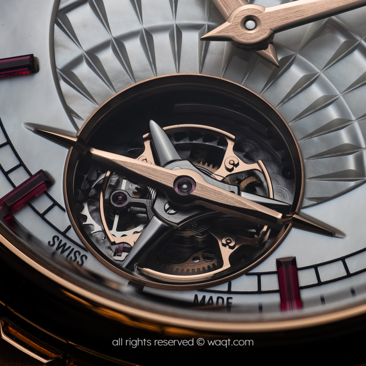 In a tourbillon, an independent rotating assembly is installed within the watch and rotates regularly around its own axis. This design compensates for the effects of gravity on the hands and watch components, thereby improving its accuracy.